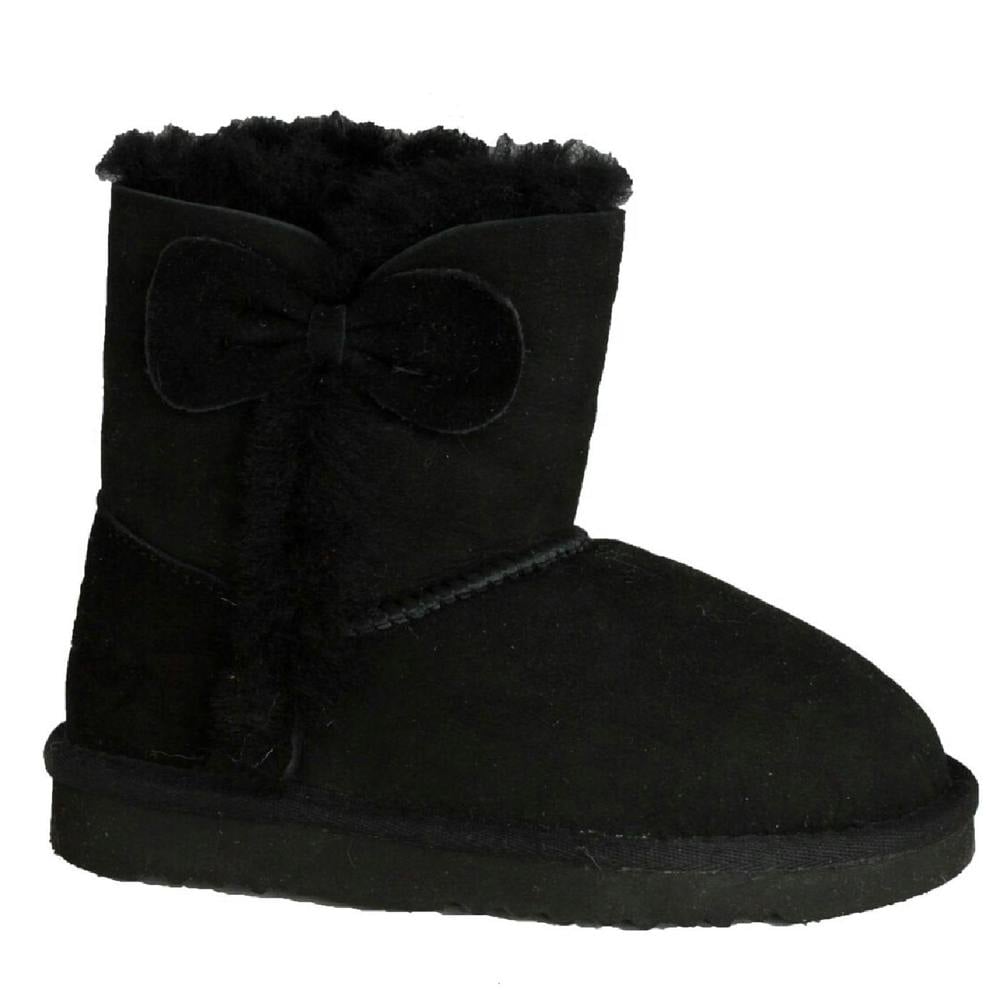 These kids’ Coco sheepskin boots come in black with a suede bow detail. The upper uses sheepskin for a soft, warm and comfortable feel, paired with an EVA sole with a rubber-like finish for a more robust base.
