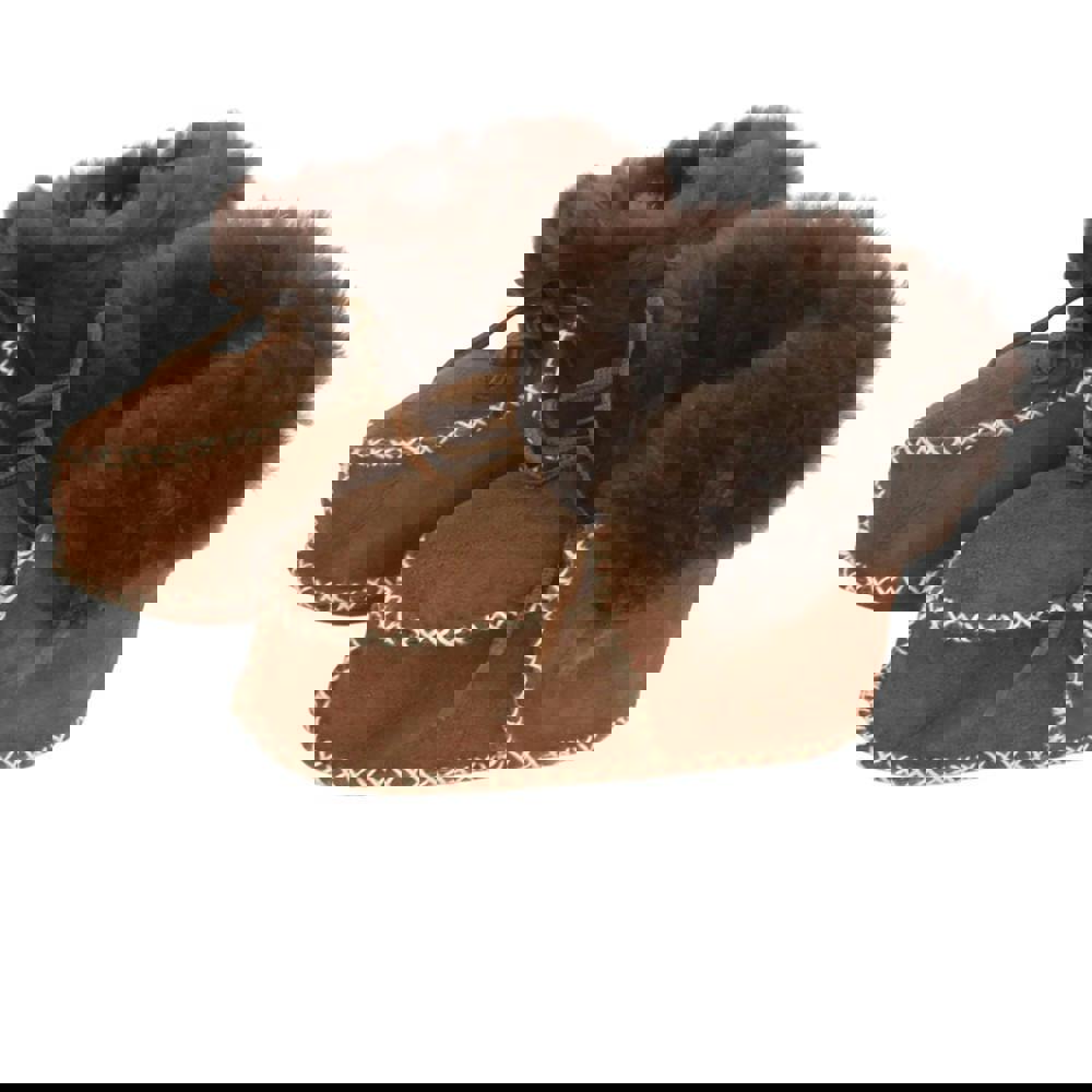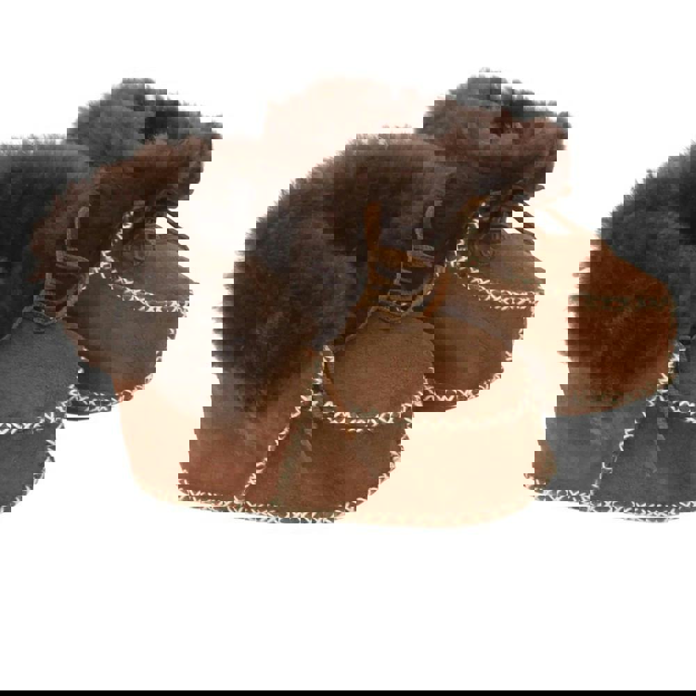Eastern Counties Leather kids’ lace up boots in chocolate with a sheepskin upper. A round toe and flat heel create a classic boot shape, finished with contrast stitching for a defined look. The turnover cuff adds a distinctive detail, while the lace-up fastening allows an adjustable fit.