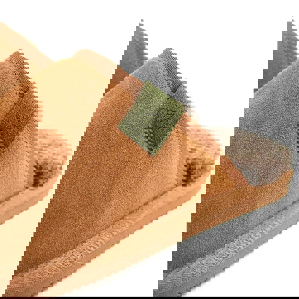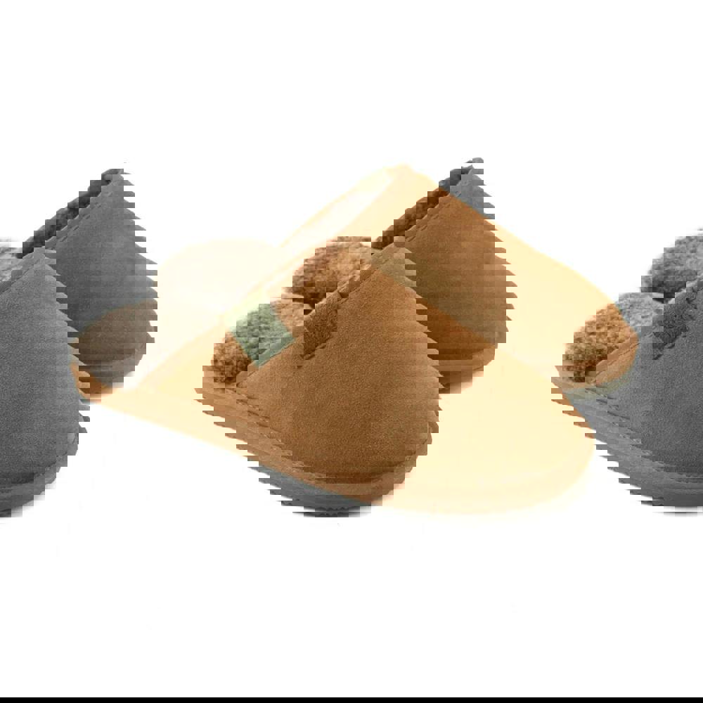 These men’s Ellis slippers from Eastern Counties Leather come in a chestnut shade with a plain mule silhouette. The upper is made from suede and the lining is sheepskin. A slip-on design keeps the profile clean and easy to wear, while a contrast tab adds a simple finishing detail.