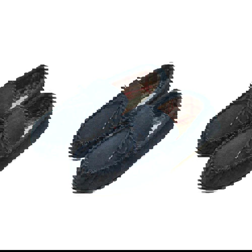 These men’s moccasins from Eastern Counties Leather are made in suede with a classic moccasin shape and soft leather detailing. Finished in navy, they offer a refined look for wearing around the home.