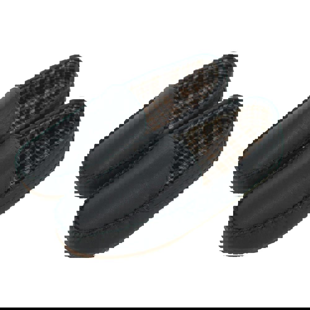 Inside, the checked cotton lining adds a distinctive detail. Underfoot, the hard sole is made from slip-resistant TPR for practical everyday wear.