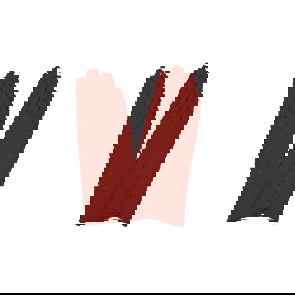 Finished with ruche detailing and delicate button accents, these ladies’ gloves bring a considered touch to a traditional silhouette. The rich cherry colour adds a distinctive note to winter outfits, pairing easily with both neutral outerwear and bolder seasonal tones.