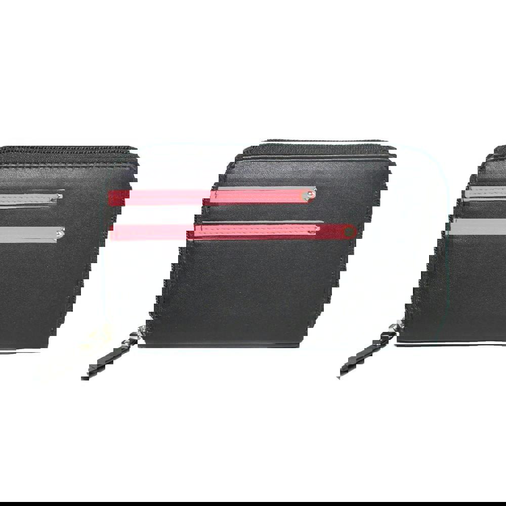 The Eastern Counties Leather Womens Gia Leather Purse is a compact purse designed to keep everyday essentials organised. Finished in black with coral detailing, it features stripe detail and studded accents for a distinctive look.