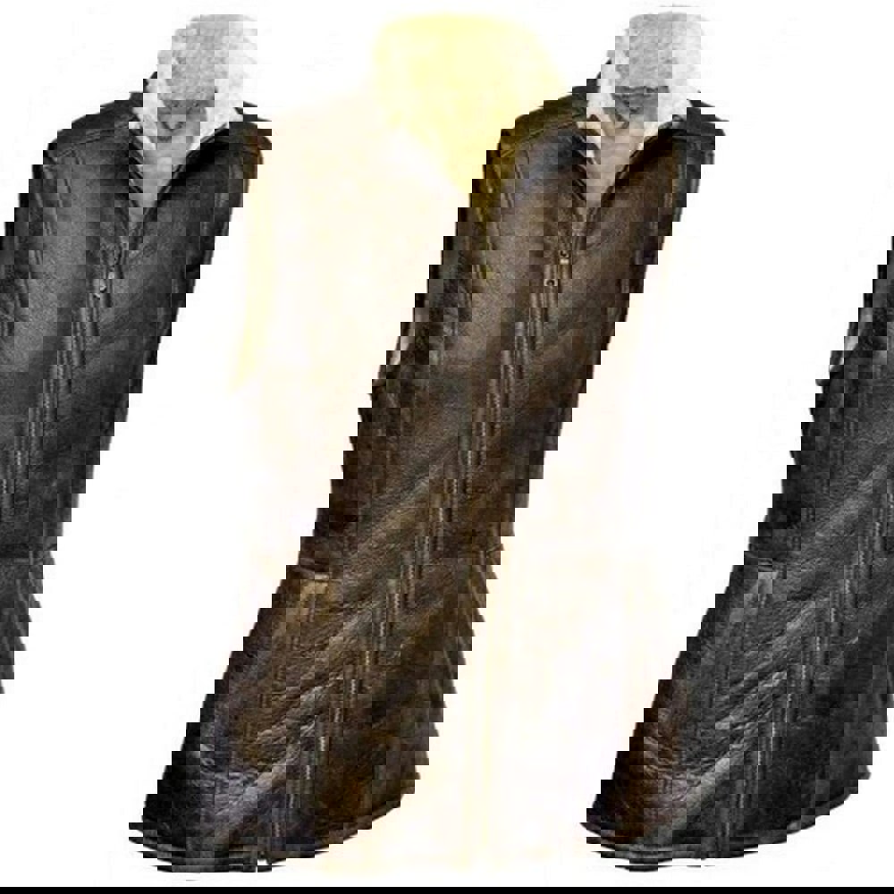 The Eastern Counties Leather Gilly gilet is made from sheepskin in a plain finish. This sleeveless style is reversible and includes stitching detail for a clean, structured look.