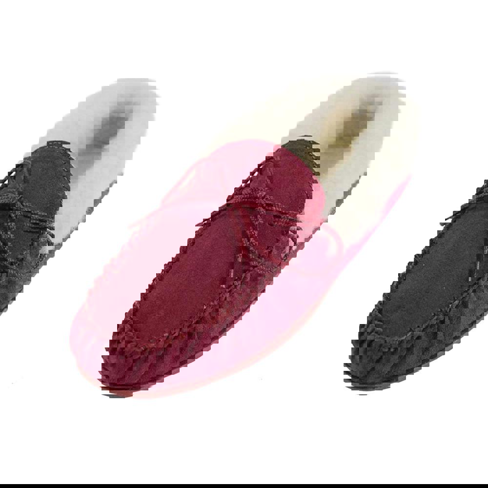 These women’s moccasin slippers combine a soft-touch suede upper with a wool mix lining for a comfortable feel. Finished with a wool collar, they offer a classic moccasin shape suited to slipping on at home.