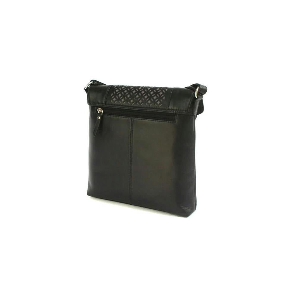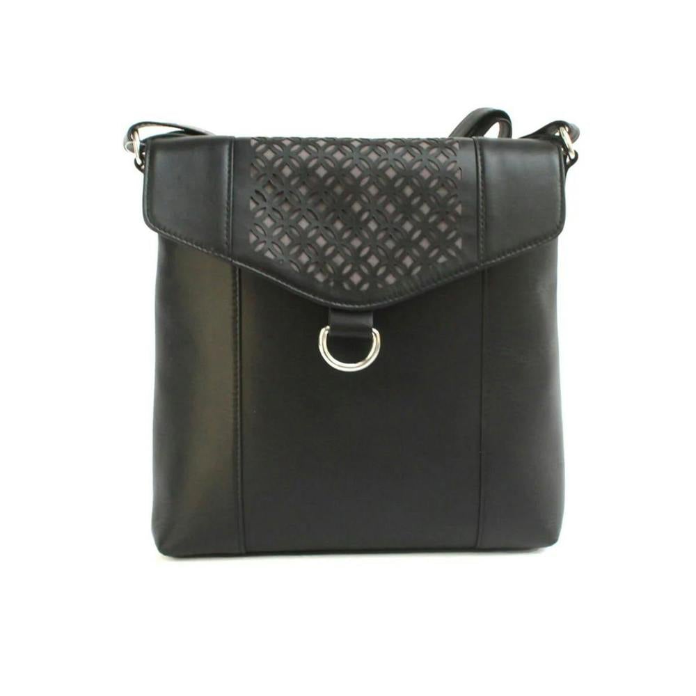 The Eastern Counties Leather Womens Janie Leather Handbag in black is a compact Leather Handbag designed for everyday use. It features a contrast panel design with laser cut holes, adding detail while keeping the look clean and modern.