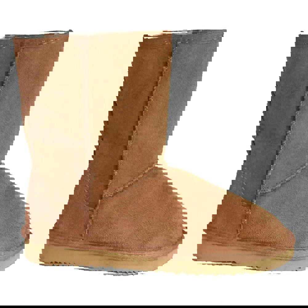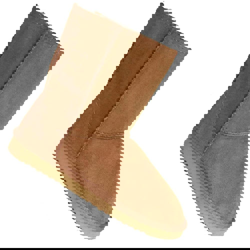 These Eastern Counties Leather Jodie ankle boots are made with a sheepskin upper and a mid-cut profile. A slip-in fastening keeps the look clean and simple, while the round toe and flat sole create a classic, easy-to-wear shape. Embossed and stitched detailing adds definition to the design, and the reinforced heel is finished with a suede heel grip for added structure.