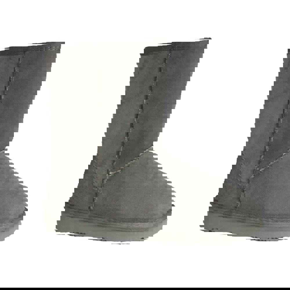 These short outdoor boots combine real sheepskin with a hard-wearing sole for cold-weather wear. Finished in grey, the design keeps the look clean and plain, with a reinforced suede heel for added structure.