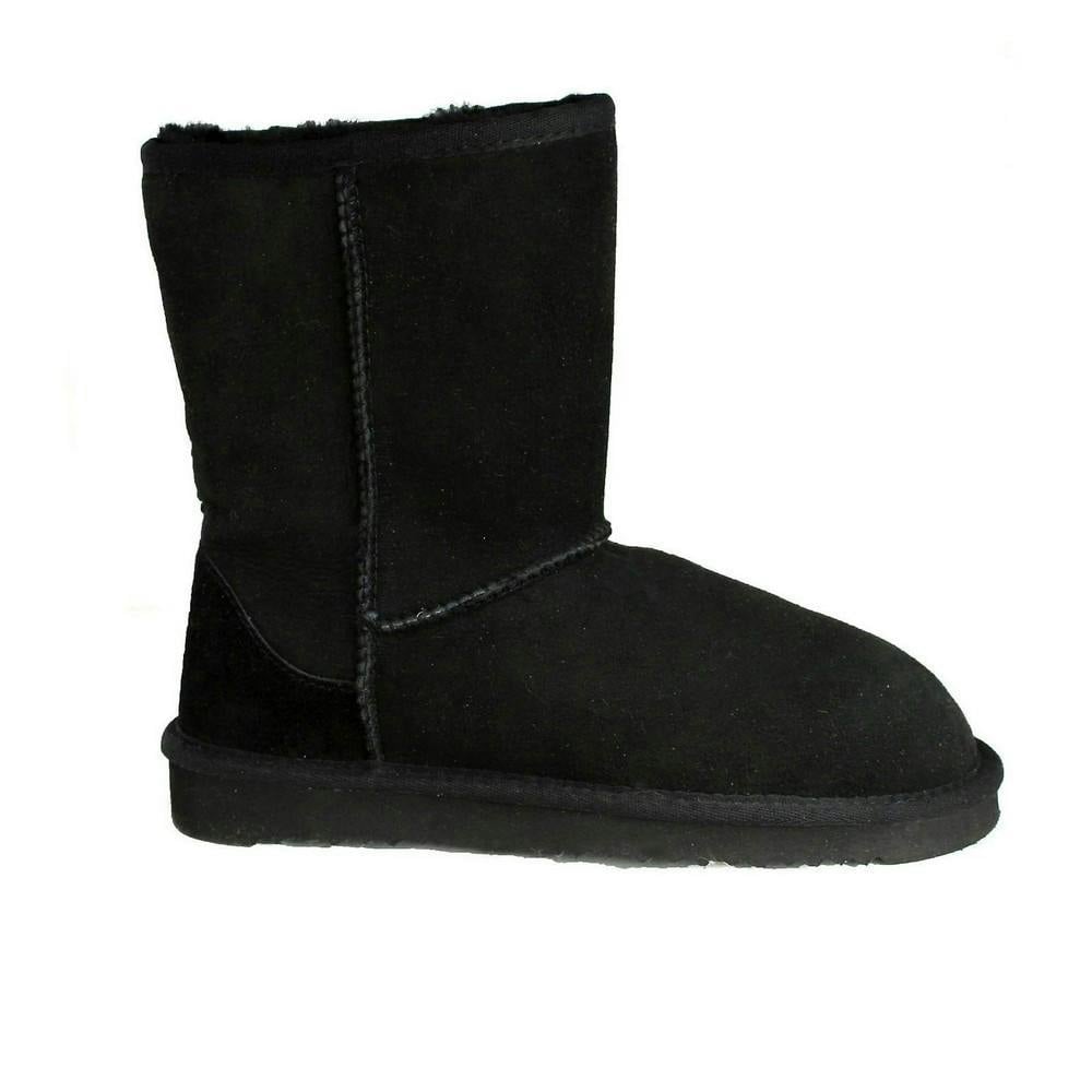 These women’s Lara boots from Eastern Counties Leather are made with double face sheepskin and a sheepskin upper. Finished in black with a plain design, they sit at a mid-calf cut and fasten with a simple slip-on entry. A round toe and flat profile keep the shape clean and easy to wear for everyday use.
