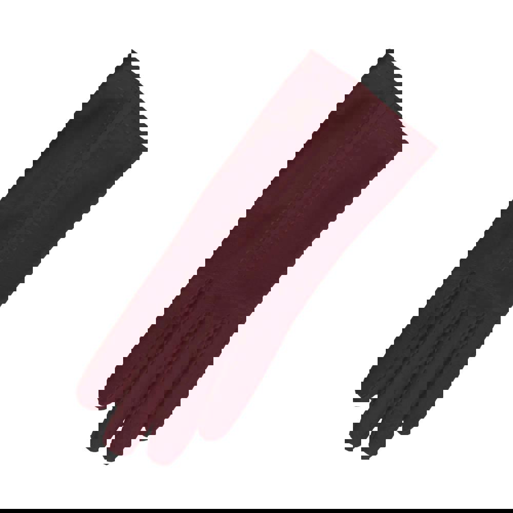Ladies leather gloves with contrast colour panel and stitching detail.