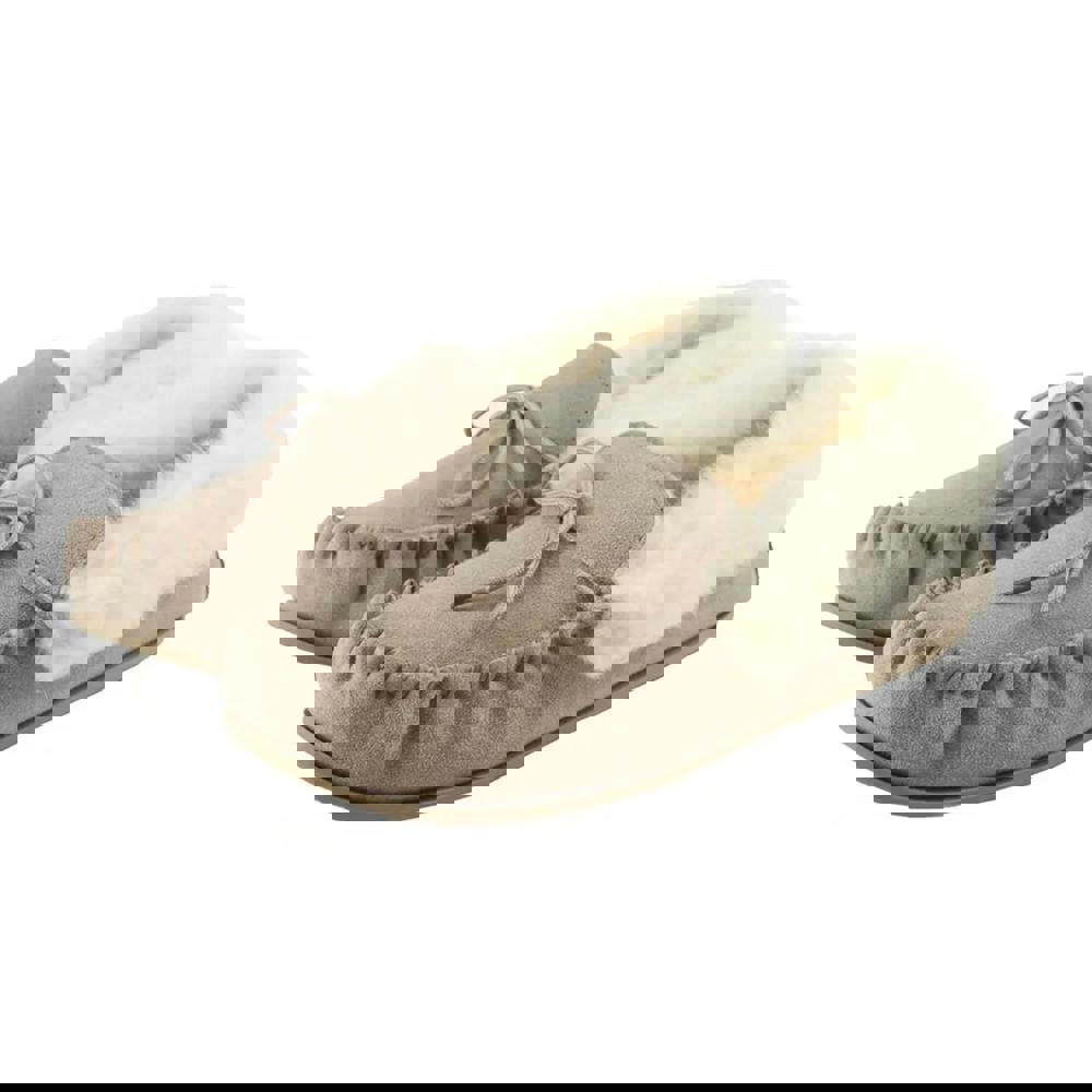 These women’s Willa moccasins from Eastern Counties Leather are finished in stone suede with a plain, low-cut profile. A round toe and soft-touch toe detail keep the front neat, while the flat sole maintains a streamlined silhouette. The slip-on fastening makes them easy to wear for everyday use.
