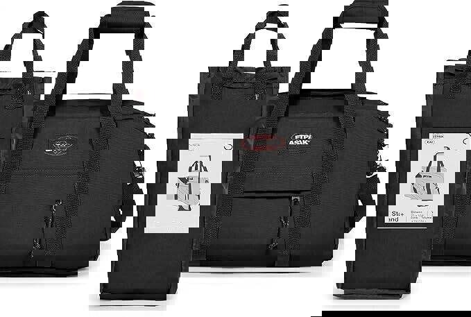 A lightweight version of the classic Stand duffle in Black: designed for carry on with easy travel details