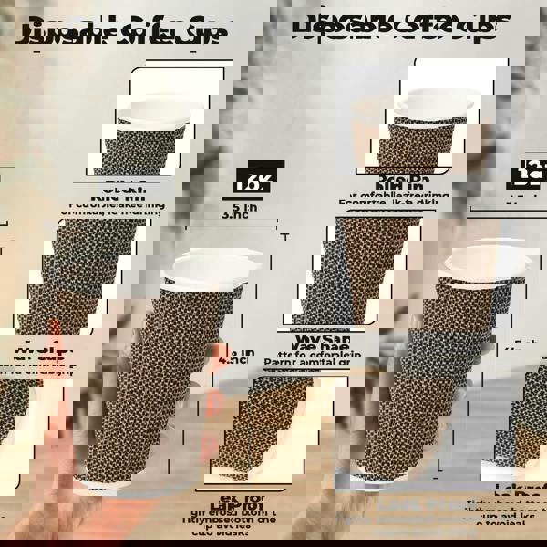 Triple-Wall Insulation : These 12oz takeaway coffee cups are customised with a 3-ply ripple effect that retains heat while keeping hands comfortable, perfect for hot beverages.