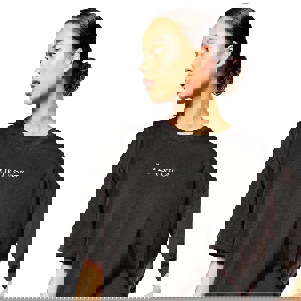 This women’s boyfriend T-shirt comes in black and is made from cotton. It has a crew neckline and short sleeves for a simple, everyday shape. The design is finished with a printed text detail.