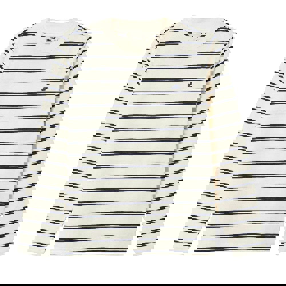 The Ellesse Boys Giancarlo long-sleeved T-shirt comes in off white with a striped design and a silicone logo. Made from 100% cotton jersey, it has a crew neckline with a ribbed finish for a clean, structured look. Long sleeves complete the simple, everyday shape.