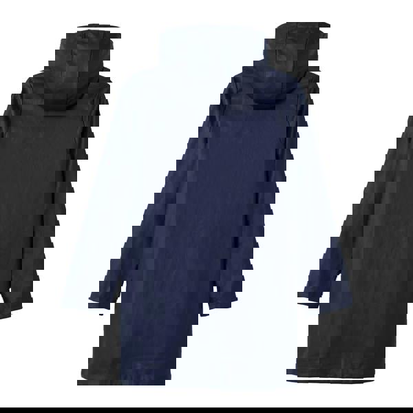 This children’s Neveste waterproof jacket comes in navy with a plain finish and Ellesse logo detailing. Made from 100% polyester, it has a longline cut with a hooded neckline and long sleeves for added coverage.
