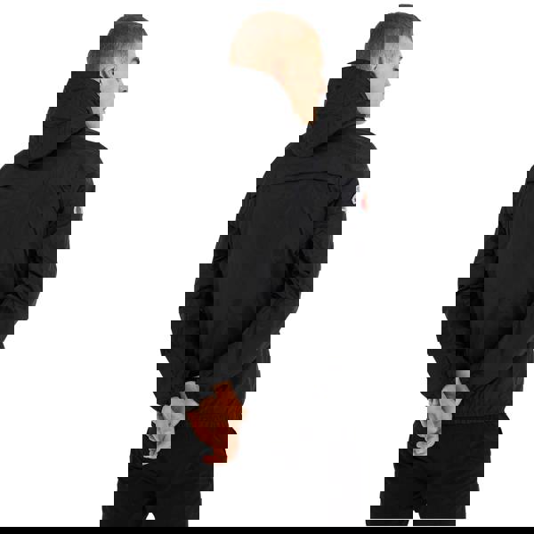 The Ellesse Acera overhead hooded jacket comes in black with a plain finish and logo detail. Made from polyamide with a PU coating, it uses waterproof fabric technology for wet-weather wear. The hood is lined and sewn on, with a drawstring for adjustment.