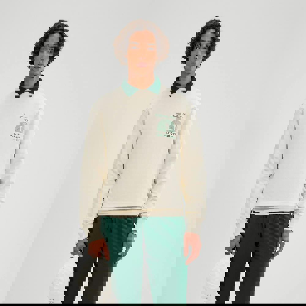 80% Cotton, 20% Polyester. Fabric: Fleece, Loopback. Design: Back Print, Logo. 400gsm. Fabric Technology: Heavyweight. Hem: Ribbed. Neckline: Crew Neck, Ribbed. Sleeve-Type: Long-Sleeved. Cuff: Ribbed. Fit: Relaxed Fit. Fastening: Pull Over. XS: 36 in. S: 38 in. M: 40 in. L: 42 in. XL: 44 in. XXL: 46 in.