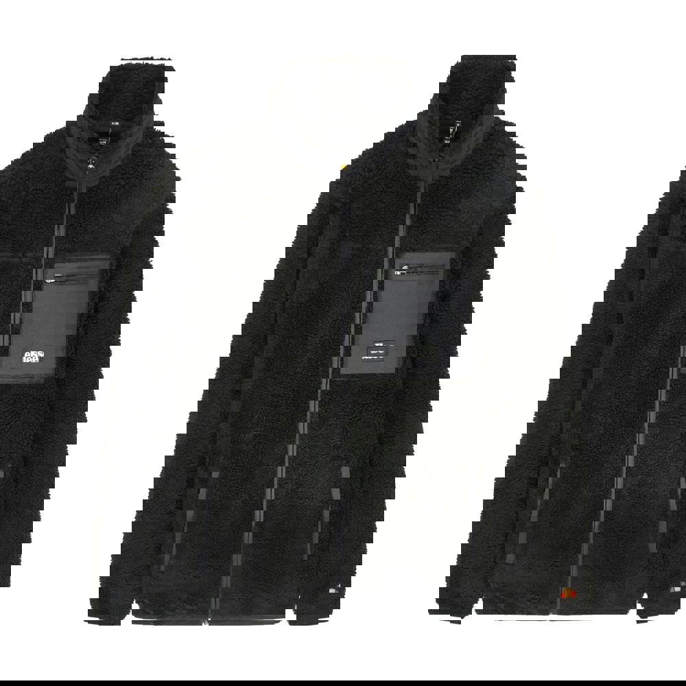 This Ellesse Este full zip fleece jacket is made with a polyamide and polyester shell and a 100% polyester lining. The fleece fabric is windproof and finished in black with a plain design and logo detailing.
