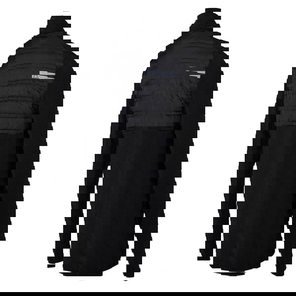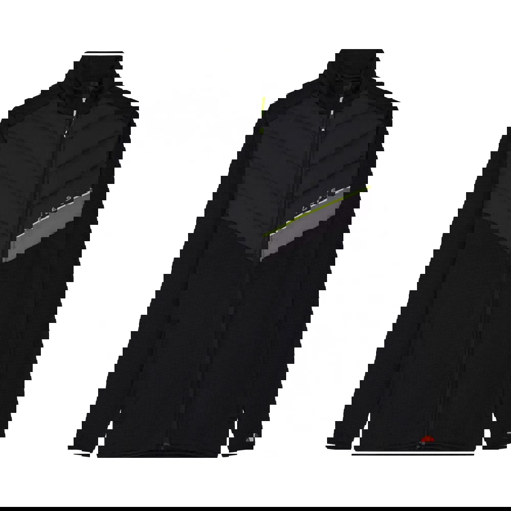 The Ellesse Jordizo jacket in black is made from a polyester and elastane blend, with a brushed back waffle fabric. Quilted panels add structure, while contrast detailing and a logo finish the look. A badge detail is included, alongside a downproof construction.