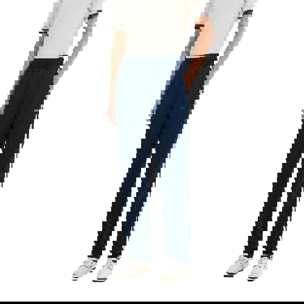 These Ellesse Latucci tracksuit bottoms come in navy with a tapered fit and a technical loopback fabric construction. The design combines a contrast stripe with logo detailing, finished with a pintuck for a clean, structured look. Heat transfer technology is used as part of the fabric detailing.