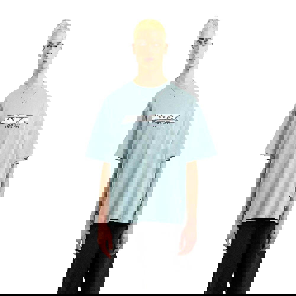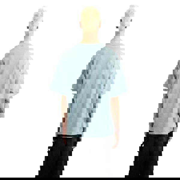 The Ellesse Squadron T-Shirt in Blue Fog is made from 100% cotton with a 260gsm fabric weight. It has an oversized fit and a short-sleeved cut, suited to casual wear and easy layering.
