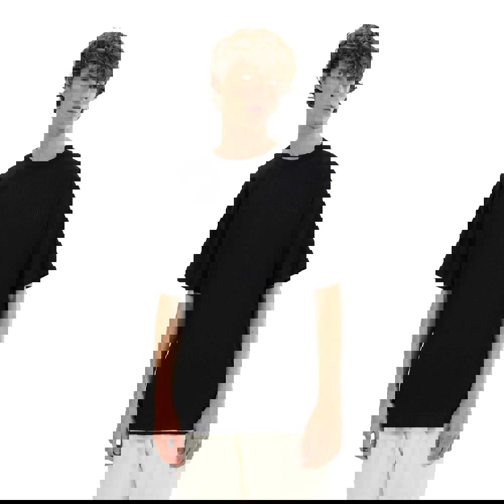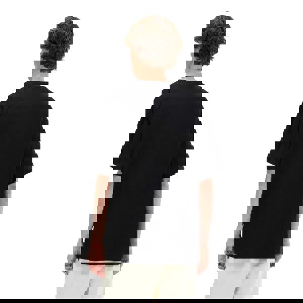 It is finished in black with a logo design, a classic crew neckline and short sleeves for a clean, casual look.