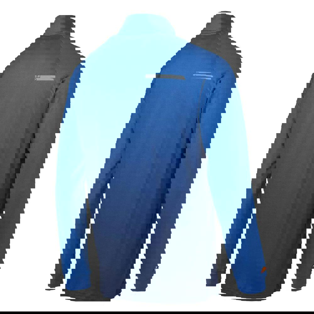 A high-neck collar and half zip fastening allow adjustable coverage, while long sleeves and ribbed cuffs keep the shape neat. The fabric is specified as anti-bacterial, durable, flexible and moisture wicking.