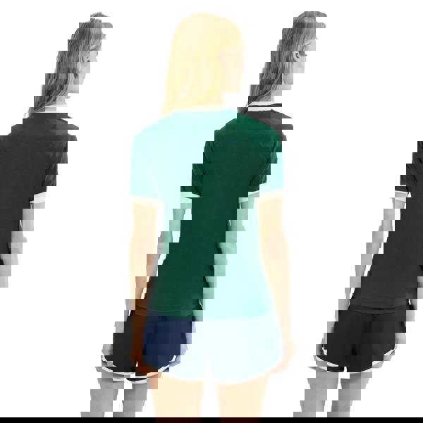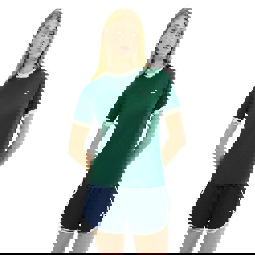 A contrast crew neckline and contrast cuffs add definition, while the short sleeves keep the silhouette streamlined.