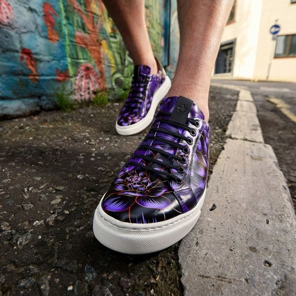 Embassy London's 'Exstatic Low' sneakers are the epitome of British elegance with a unique twist, perfect for the discerning gentleman with a quirky side. Crafted from full-grain leather, these sneakers feature a partial Union Jack print that subtly emerges from behind the top color, adding an element of national pride and individuality. Designed with comfort and practicality in mind, they include shock-absorbing insoles and durable rubber soles for superior grip and wearability. The 'Exstatic Low' seamlessly combines a traditional aesthetic with modern functionality, making it a standout choice for any wardrobe.