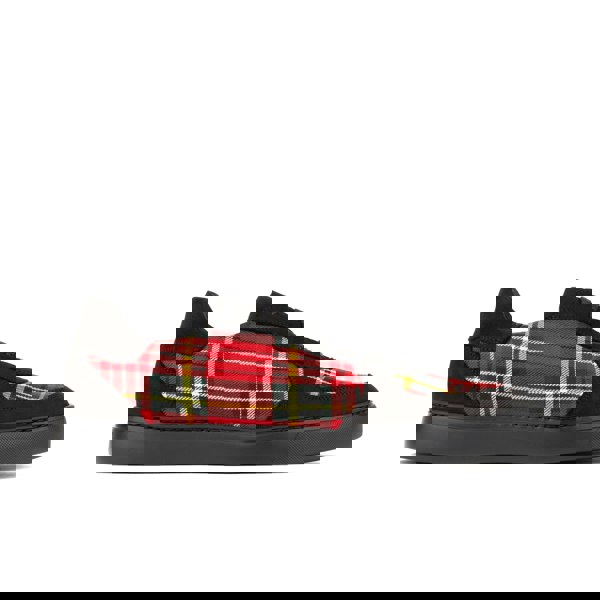 • Red tartan trainer with black suede accents