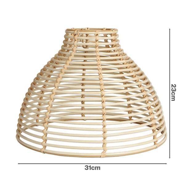 Bring natural charm into your home with Emitto ceiling light shade crafted from durable plastic with a realistic wicker effect finish. Combining the beauty of traditional woven designs with modern materials this plastic rattan lampshade offers a lightweight long-lasting solution for stylish lighting. Perfect for a range of interiors this boho lampshade adds warmth and texture to living rooms bedrooms dining areas or hallways. Designed with convenience in mind this easy fit ceiling light shade is compatible with standard UK fittings (E27/B22 depending on model) making installation quick and hassle-free. Unlike natural rattan this wicker effect lampshade is more resistant to moisture and wear making it suitable for long-term use in modern UK homes.