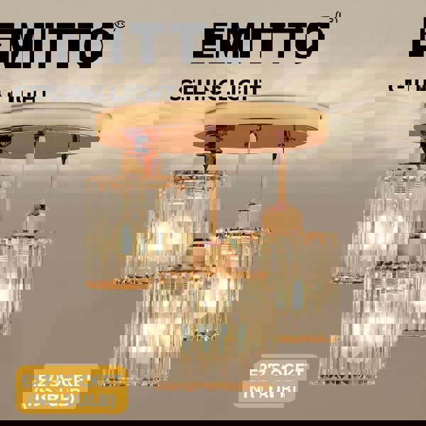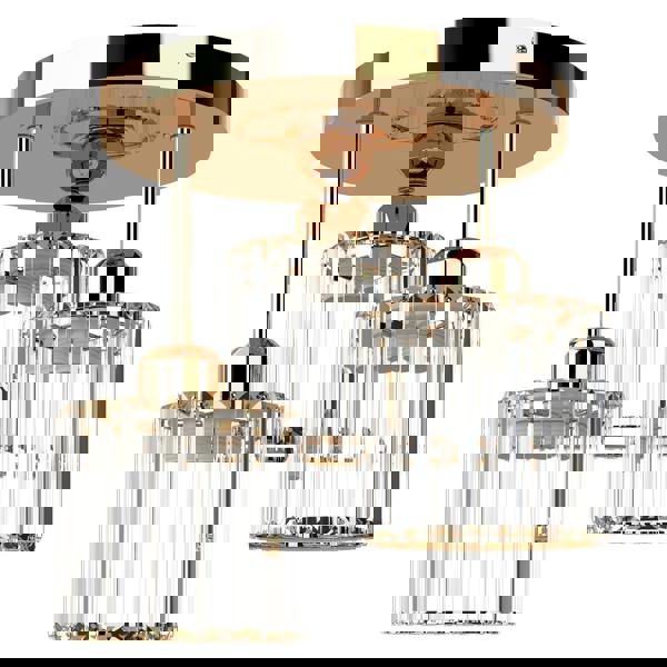 The three independent light design combined with hollow crystal construction allows 360° light diffusion creating a warm and sophisticated atmosphere. Featuring E27 sockets (max 40W per bulb) this ceiling light supports a wide range of bulb types and enables you to customise brightness and colour temperature to suit different moods and spaces. Bulbs are not included.