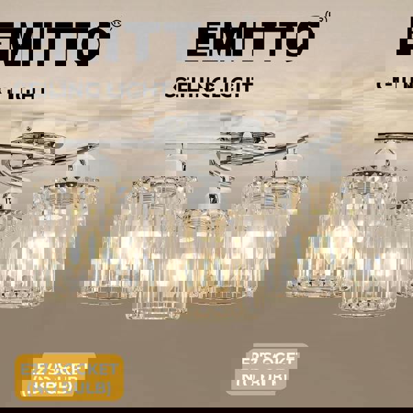 The three independent light design combined with hollow crystal construction allows 360° light diffusion creating a warm and sophisticated atmosphere. Featuring E27 sockets (max 40W per bulb) this ceiling light supports a wide range of bulb types and enables you to customise brightness and colour temperature to suit different moods and spaces. Bulbs are not included.
