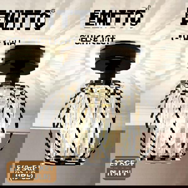 Enhance your interior with the Emitto Black Crystal Semi Flush Mount Ceiling Light designed to combine industrial metal styling with elegant K9 crystal detailing. Its compact 17cm diameter makes it ideal for hallways bedrooms kitchens and smaller living spaces while still delivering a striking decorative presence.