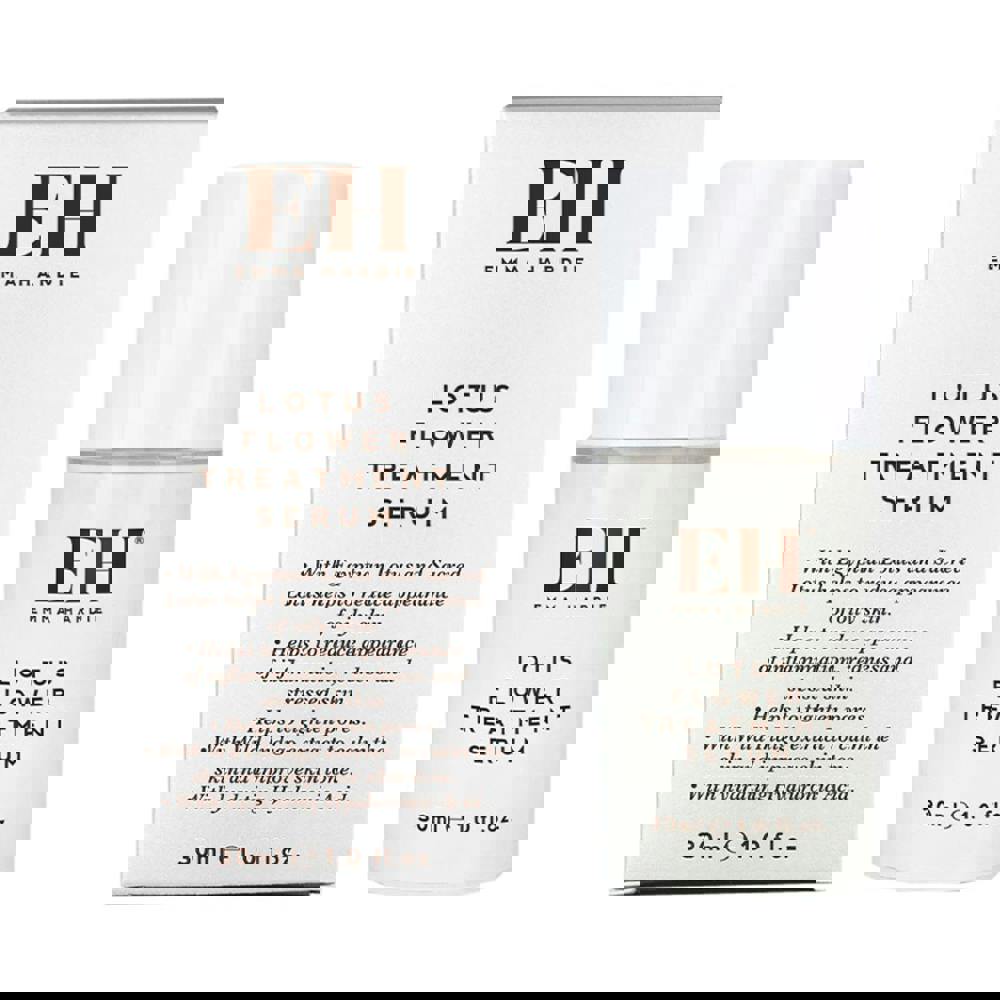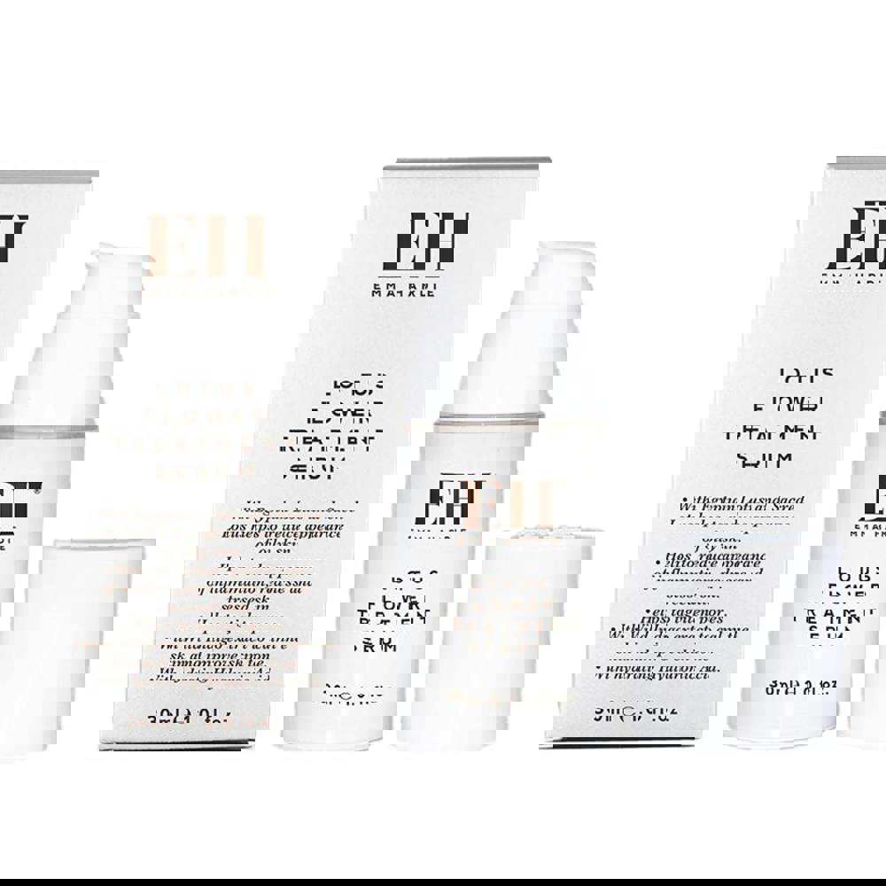 Emma Hardie Lotus Flower Treatment Serum containing hydrating Hyaluronic Acid promotes a visibly clearer and moisturised complexion. With Egyptian and Sacred Lotus to help reduce appearance of oily skin, inflammation, redness and stressed skin leaving skin smooth and radiant. Enriched with Niacinamide to help regulate sebum and provide anti-inflammatory benefits. The formula also contains PoreAway™ to tighten and re-new the skin as well as reduce shine, blackheads and microcysts and Wild Indigo Extract to calm and improve skin tone by breaking down cortisol production.