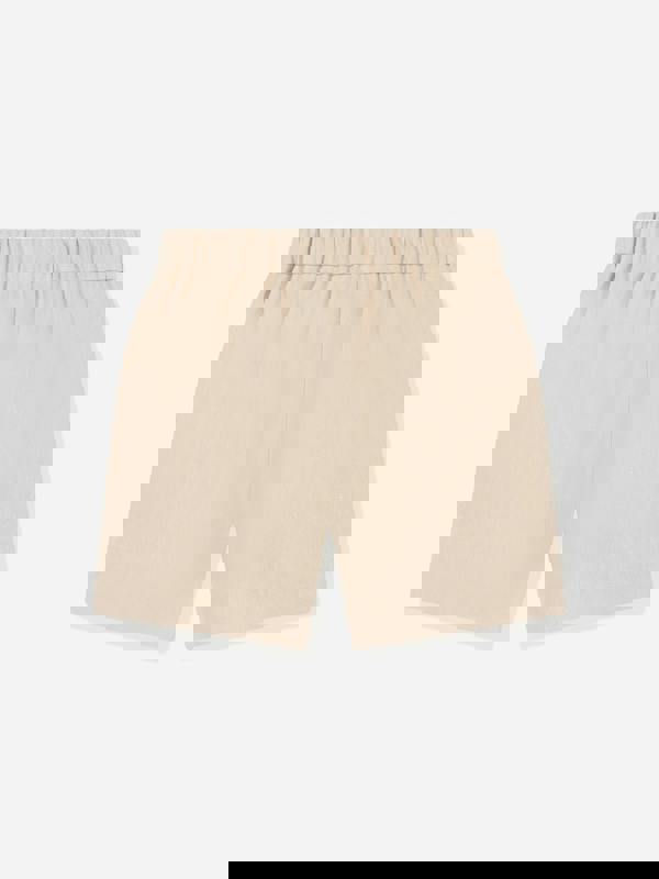 Emporio Armani baby boys shorts in camel beige, made from linen. A logo detail adds a clear branded finish, keeping the look simple and recognisable for SS2026.