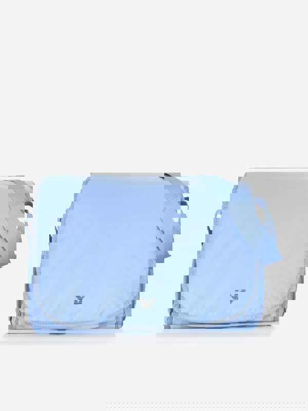 The Emporio Armani Baby Logo Changing Bag is designed to keep everyday essentials organised when you are out and about with little ones. Finished in blue, it offers a spacious layout with practical pockets to help separate smaller items from larger necessities, making it easy to reach what you need during busy days.