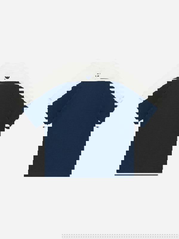This Emporio Armani boys T-shirt comes in blue with a colourblock design and a front logo print. Part of the SS2026 collection, it brings a clean, modern look to everyday outfits while keeping the focus on bold branding and colour contrast.