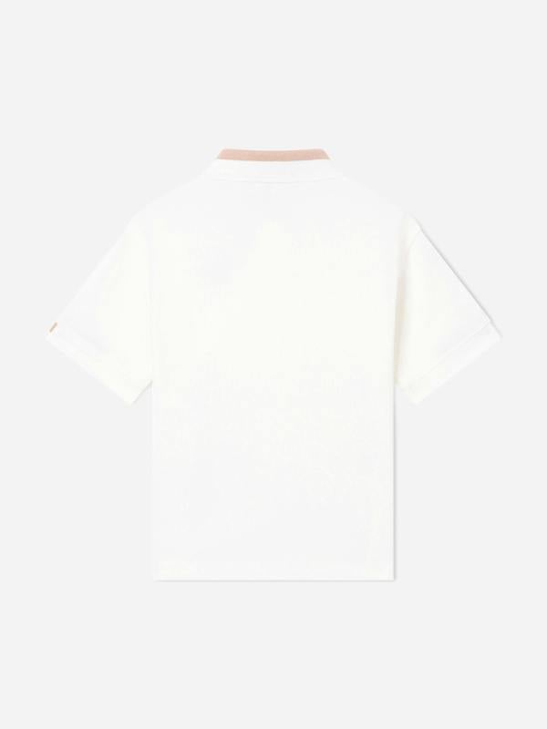 This Emporio Armani polo shirt comes in white and carries the brand’s iconic eagle logo. A clean, classic option for a boys’ wardrobe, it offers a simple designer finish that works across a range of looks.