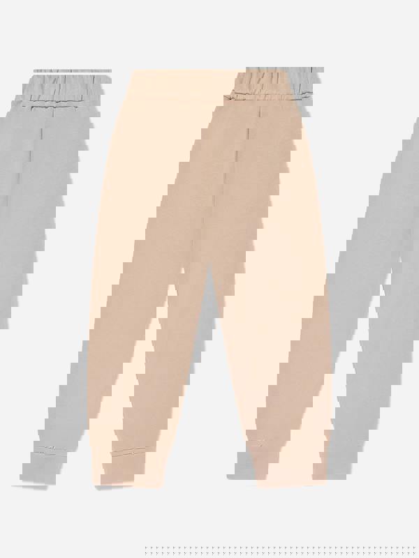 Emporio Armani boys logo joggers in beige from the SS2026 collection. The camel-toned colour keeps the look clean and versatile, while the embossed Emporio Armani logo adds a subtle branded finish.