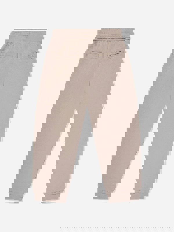 The design centres on the printed logo, adding a playful note to a classic jogger shape. The source information confirms a focus on comfort and a premium-quality material construction.