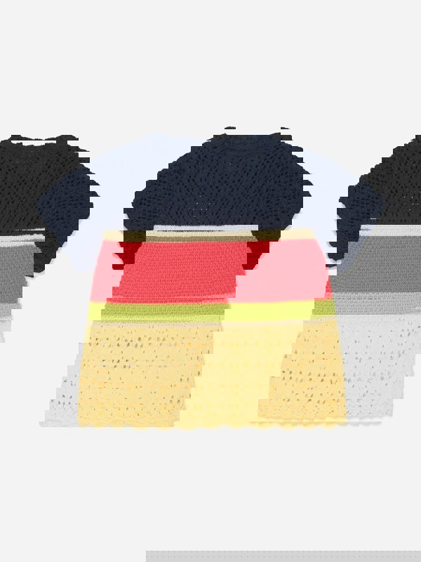 This girls’ crochet knit T-shirt from Emporio Armani brings multicoloured detail to a simple wardrobe staple. Made in Italy, it uses a crochet knit construction with a bright, varied finish that stands out on its own. The short-sleeved silhouette keeps the look clean, while the textured knit adds visual interest for everyday wear and occasions.