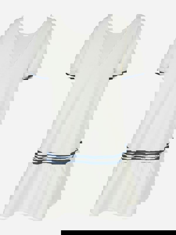 This Emporio Armani girls dress comes in white with signature logo tape detailing. The clean, minimal look is finished with branded tape that runs along the dress to emphasise its lines.