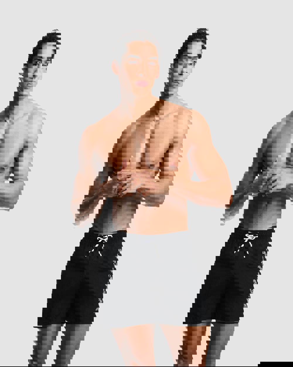 Emporio Armani men’s swim shorts combine a clean finish with practical detailing for days by the pool or at the beach. This black pair is cut with a drawstring waist for an adjustable fit and finished with vertical logo embroidery. Side pockets add everyday convenience, while the construction is completed with a separate pocket material and lining for a neat internal feel.