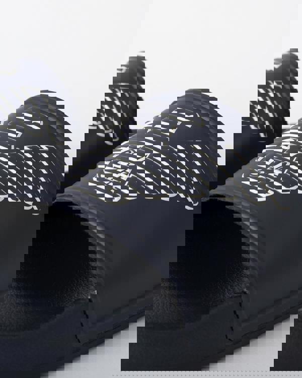 Emporio Armani brings a clean, graphic finish to warm-weather footwear with the Mens PVC Pool Slides with Eagle Logo. Shaped as a pool slide, this pair is made from PVC and comes in a Blue/Whisper White colourway. The signature eagle logo adds a recognisable brand detail, keeping the look sharp for holidays, poolside settings and off-duty days.