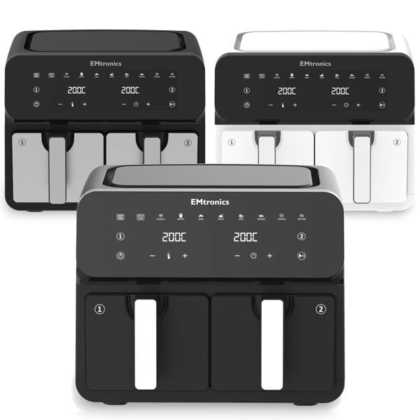 Double Basket Air Fryer 9 Litre with 99 Minute Timer - Black