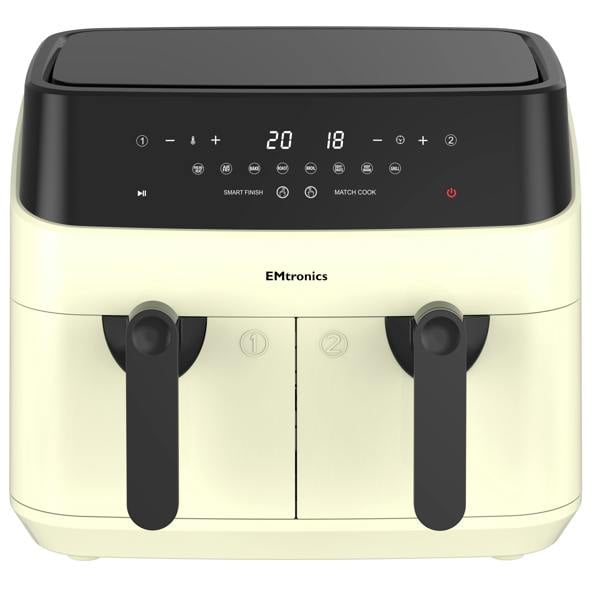 Cook much healthier, nutritional meals with the 9 Litre EMtronics EMAFDD9LCR Dual Digital Air Fryer, allowing you to cook 2 seperate dishes/food items at the same time, with the 'Dual Basket' feature. The 'Dual Power Zones' have the ability to cook at different temperatures, so you can synchronise the cooking times for your whole meal with ease.