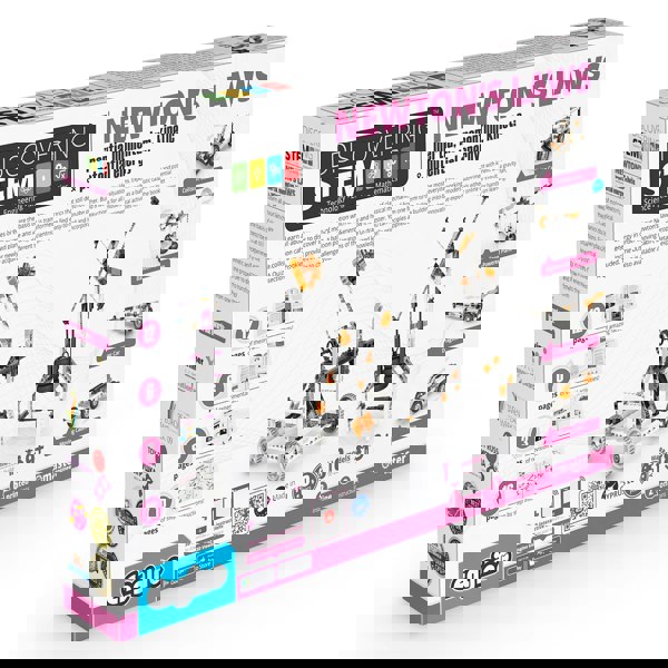 Learn all about Newton’s laws of motion which are the basis of classical mechanics that still describe most everyday life situations. Experiment with kinetic and potential energy in order to discover the properties of energy and how it is transformed from one form to the other. Build 8 working models such as a ballistic catapult, a gravity fan, a collision car, a moving cabin, a balloon powered plane and a dragster. You can find easy-to-follow building instructions for all models either online or in the booklet included. The booklet provides detailed explanations of the different scientific principles applied and incorporates innovative experimental activities for hands-on learning. A Quiz section is also available to challenge your newly acquired knowledge!