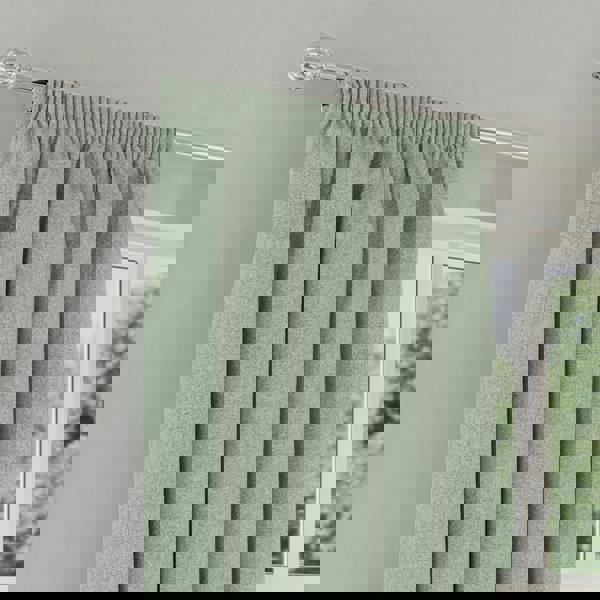 Enhanced Living Green Textured Basketweave 100% Blackout Pencil Pleat Thermal Energy Saving Curtains - Ideal for Living Rooms & Bedrooms